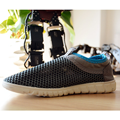 该作品是一个随行电动按摩鞋,旨在减轻步行或运动后带来的疲惫感