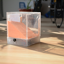 这个作品是一个沙漠趣味灯,工作原理是利用沙子的流动控制光电传感器的断开,连接,开实现亮灯或灭灯。