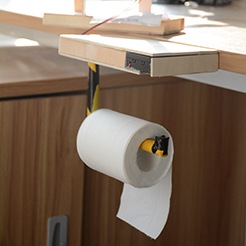 这是一个方便卷纸架,灵感来源是生活中时常会有人碰到上厕所没有纸的情况。