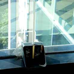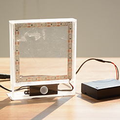 这个作品是一个洗手间提示灯,功能是在人上厕所时有一个亮灯提醒,让人留意厕所男女标识,以防走错厕所。